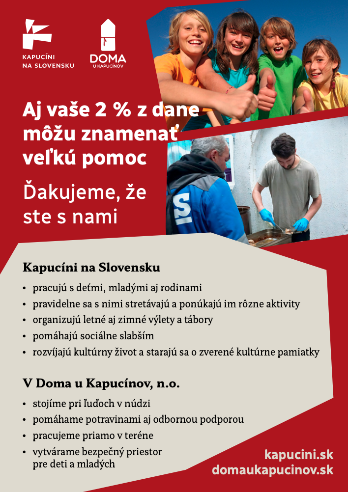 Údaje potrebné k poukázaniu podielu 2% dane kapucínom: