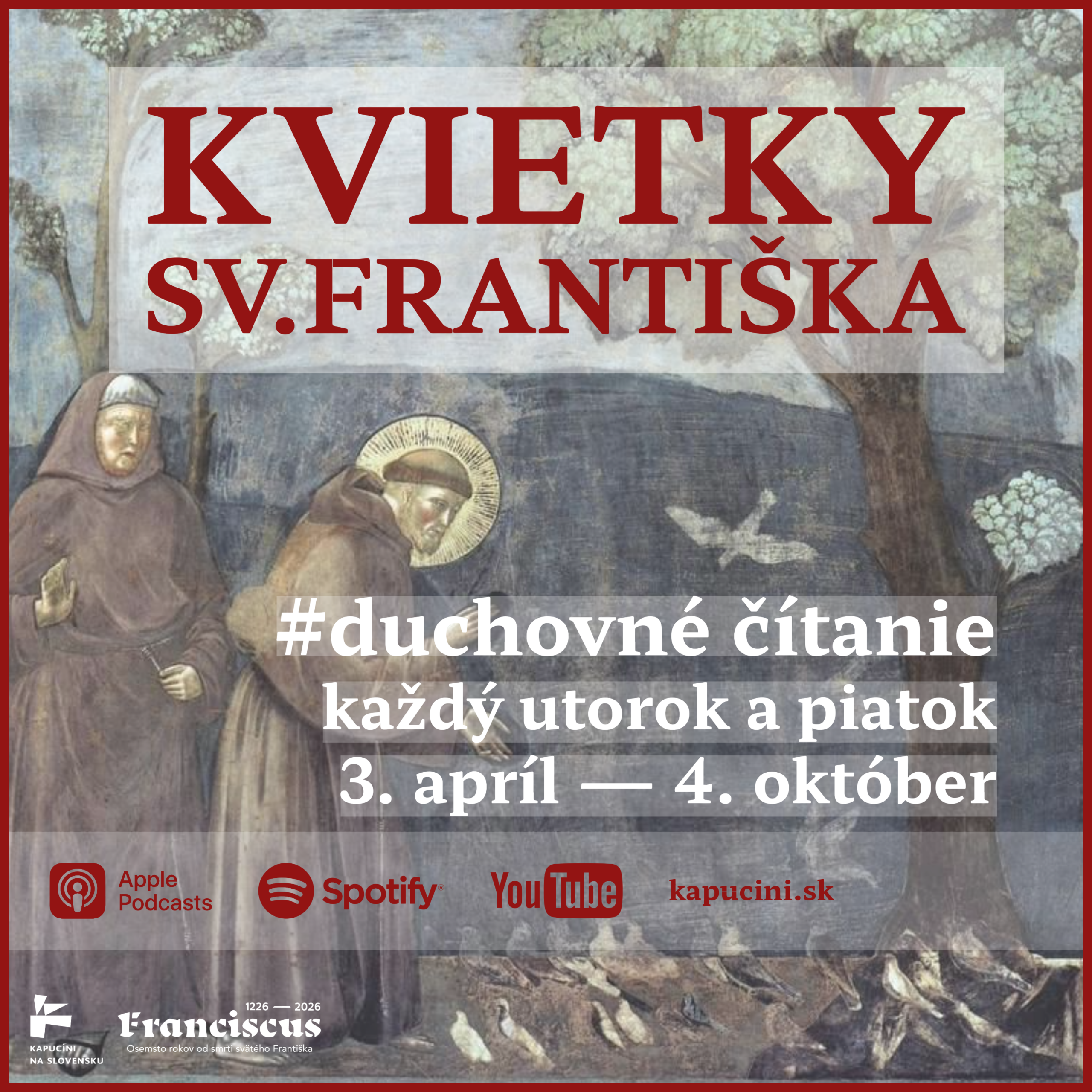- Začíname v piatok 3. apríla 2026 (Veľký piatok) uverejnením prvej časti z knihy Kvietky svätého Františka.