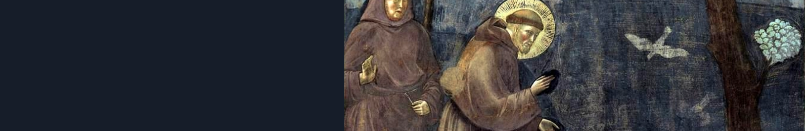 ilustračný obrázok : La Predica agli uccelli — Giotto di Bondone, cca 1295–1299, Basilica di San Francesco d’Assisi.